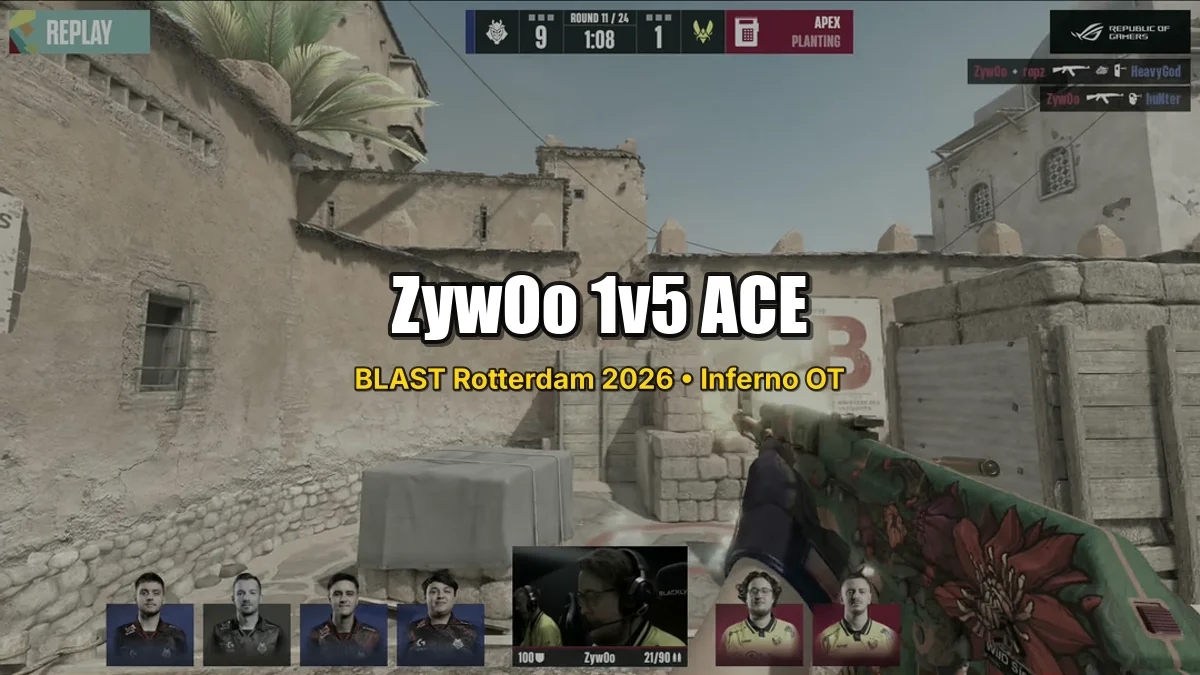 His stats this tournament have been absurd even by his own standards. He’s been the highest-rated player at BLAST Rotterdam heading into today, and this ace is going to pad those numbers even further. More importantly, it’s the quality of the kills. ZywOo doesn’t just frag — he frags in the rounds that matter most. His clutch conversion rate in 2026 is genuinely ridiculous, and this 1v5 is the crown jewel.